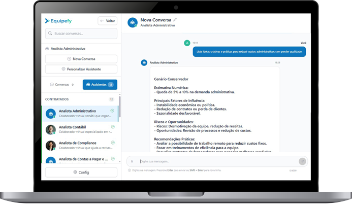 Além de fornecer os melhores assistentes virtuais, a Equipefy também possui equipe de desenvolvedores com mais de 25 anos de experiência nas mais variadas tecnologias e está pronta para ajudar sua empresa crescer em diversas frentes: